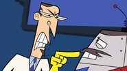 Principal Scudworth lashes out at Mr. Butlertron for not warning him about checking for crab in his teeth before the meeting. Mr. Butlertron insists that he told him, but Scudworth does not believe him, and tells Mr. B that he does nothing but break promises. Angered, Mr. B retorts that Scudworth broke his dramatic, epic, award-winning promise that he made to him many years ago. Scudworth remembers the promise he made and admits that he forgot all about it, not feeling the need to keep a promise with a robot who cannot feel emotions. Mr. Butlertron gets mad and throws a tray of crab against the wall as he rides off in rage.